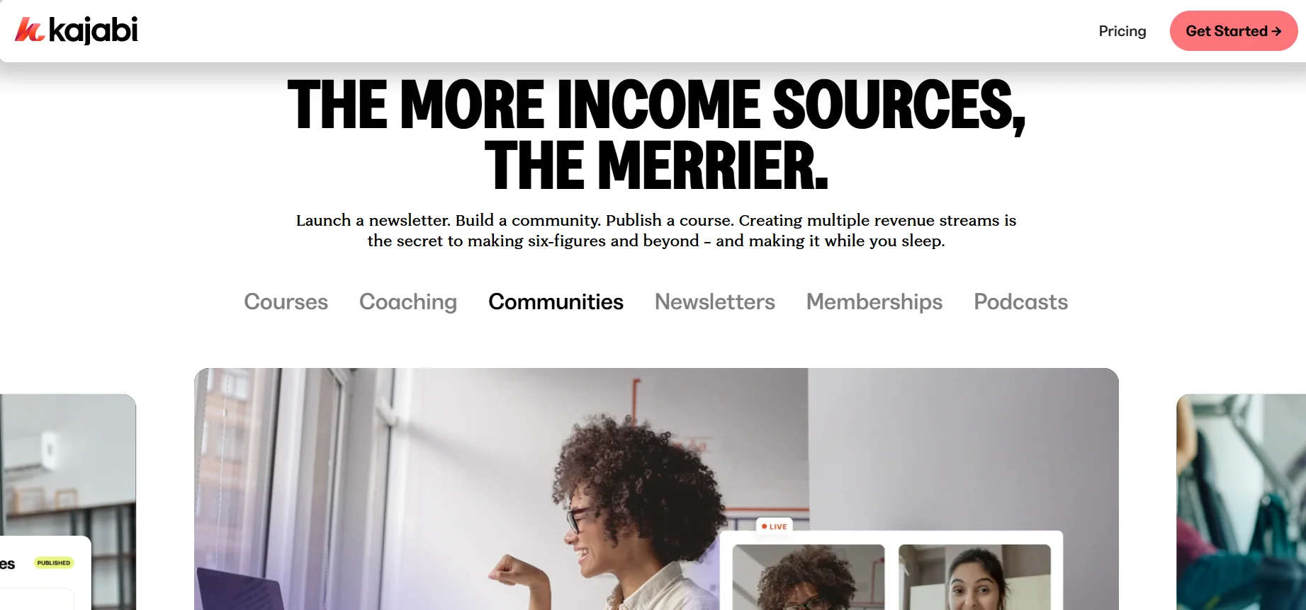 Kajabi offers four pricing plans, all billed annually with a 50% discount. The Kickstarter plan is $27/month and is ideal for laying the foundation of your business.