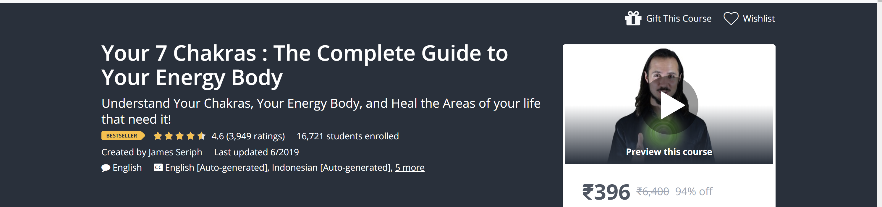 Udemy courses would give you ‘The Complete Guide to Your Energy Body‘. You will learn to comprehend your Chakras, your energy body, and heal the areas of your life that prerequisite!
