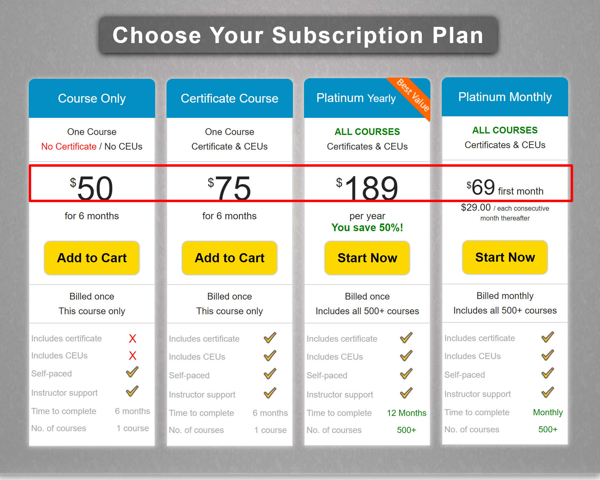 - Go At Your Own Pace: All courses the self-paced. This means you can learn when you want on your own time. You do not need to be online at a specific date or time.