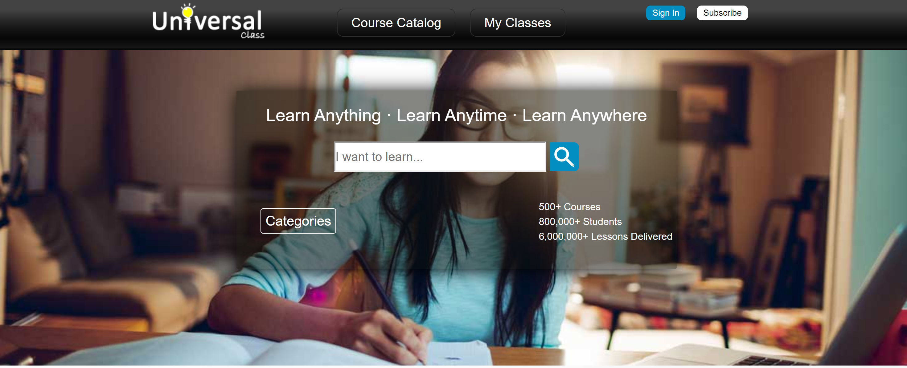Universal Class provides high quality, online courses to help you learn the skills needed to achieve your goals. Also, the courses are not just tutorials; they are real. They include lessons, exams, assignments, discussion boards and actual assessments of your progress to help you master the learning outcomes.