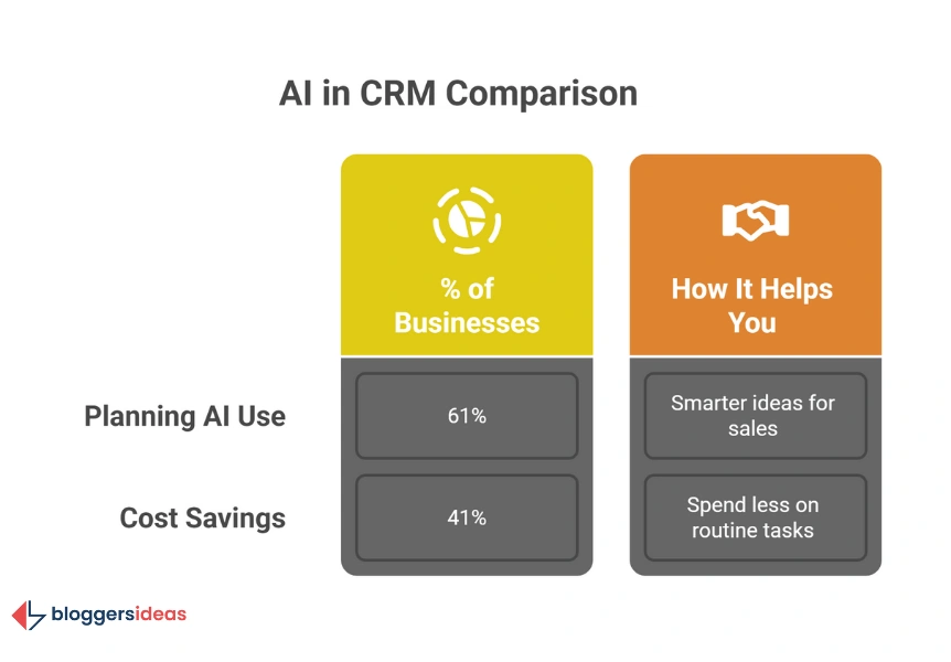 What It Means: AI is like a brain that helps your CRM think. It can guess what customers want, write emails, or spot sales chances. Many businesses are excited to use it soon.