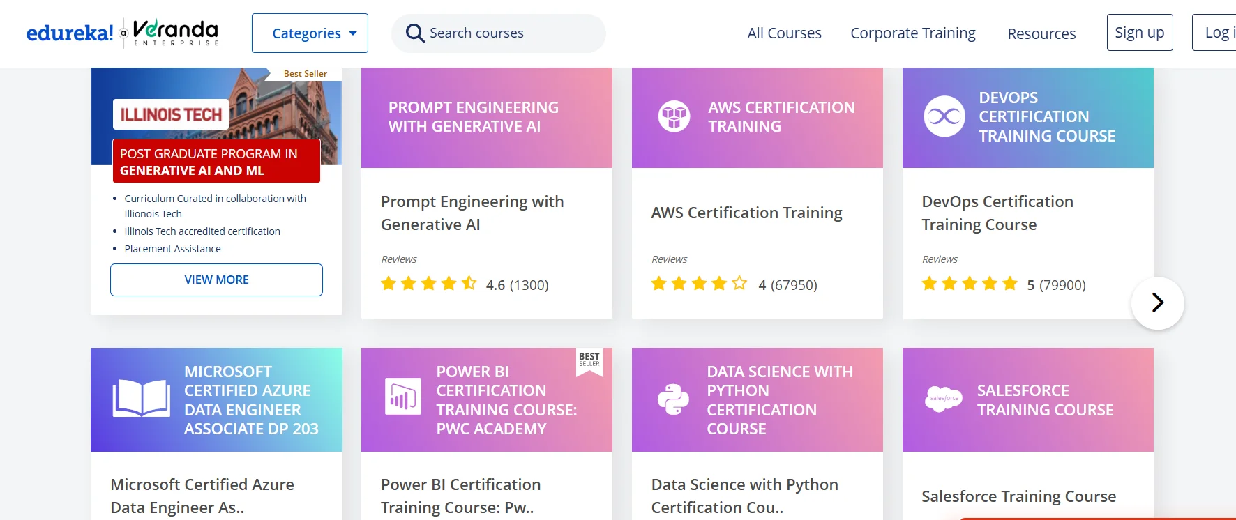 Edureka is a great online learning platform for IT professionals who are looking to improve their skills or advance their careers. Edureka's certifications are recognized throughout the industry and highly valued.