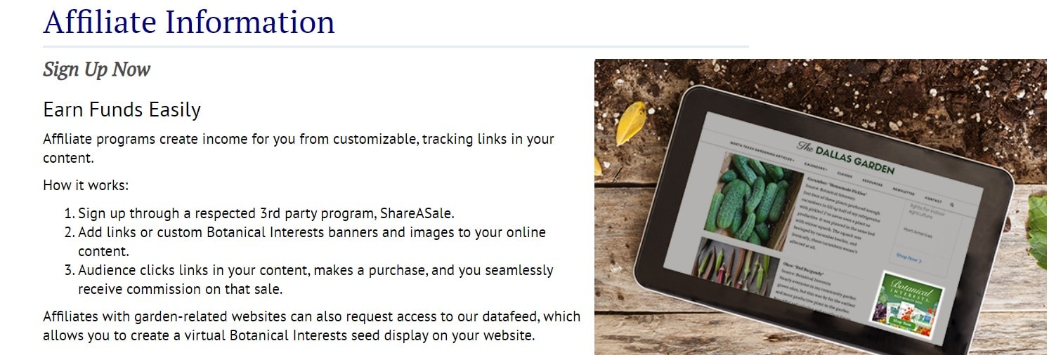 A ShareASale publisher account is required to join their gardening partner program, which is advertised in large letters on the company’s website as part of the network’s affiliate network.