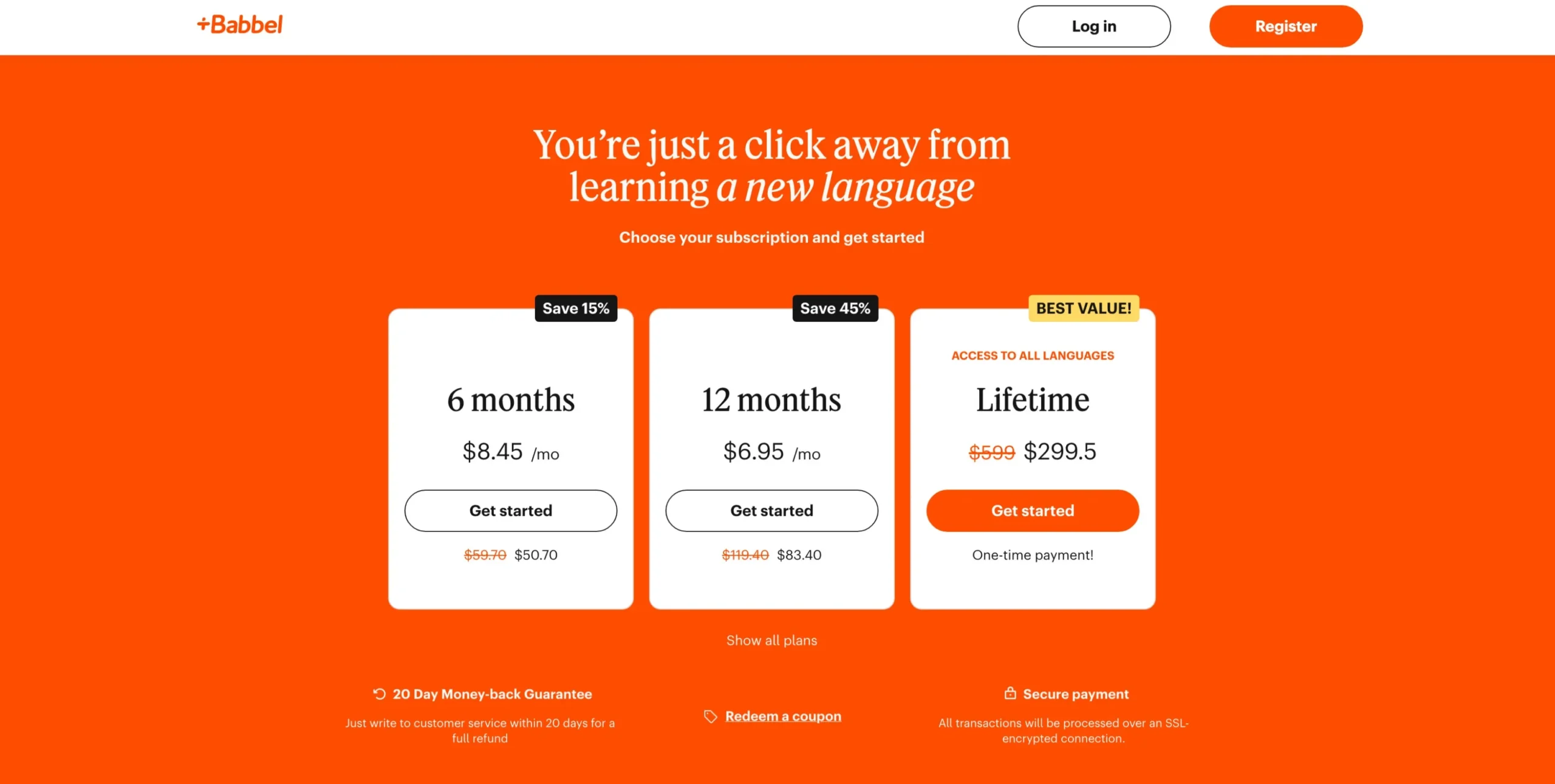 Babbel provides three-monthly, six-monthly, and annual subscription programs for learning. It's critical to know that Babbel registration is free. They will never charge you unless you input your payment information freely on their payment page.
