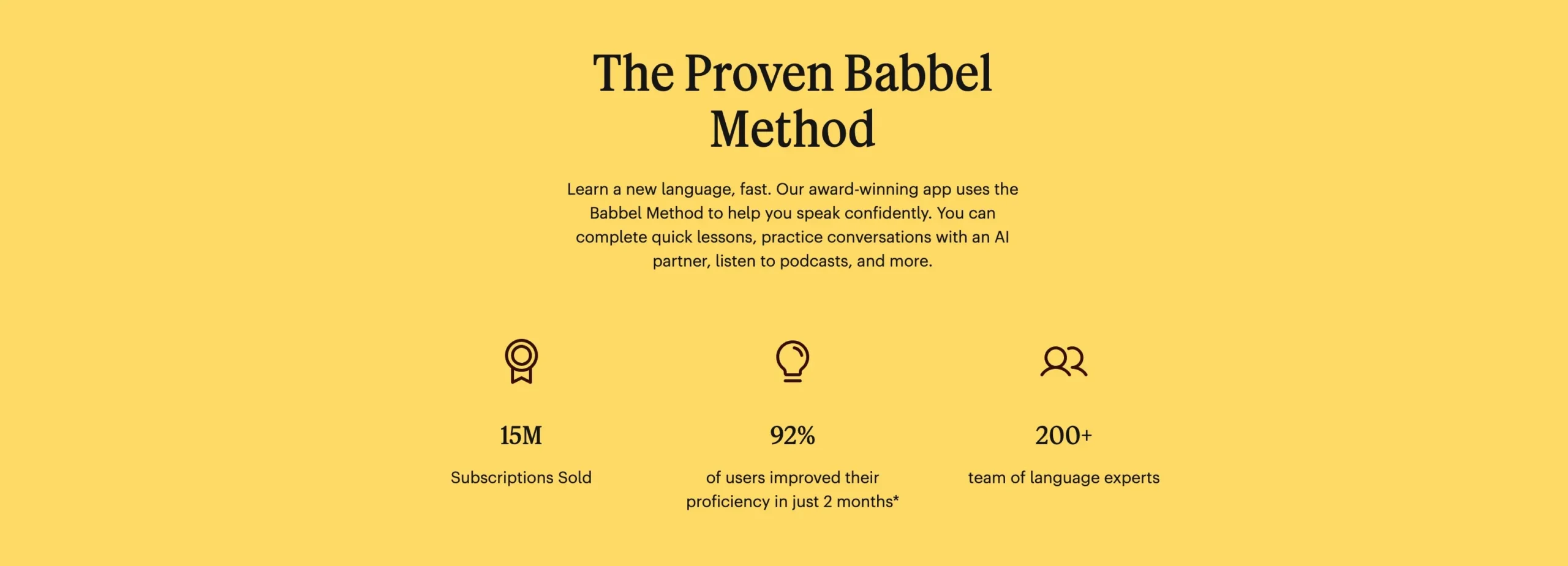 If you used Babbel exclusively to study a language, you would graduate with a solid foundation but would be far from proficient. Babbel does not make the promise that it will transform you into a near-native speaker of a new language.