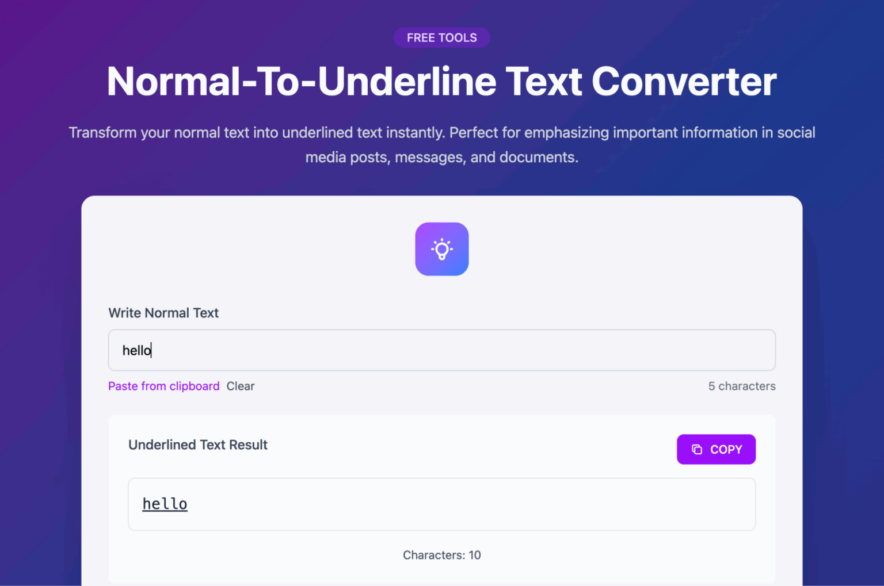 - Your text is instantly converted into underlined style, ready for copying
