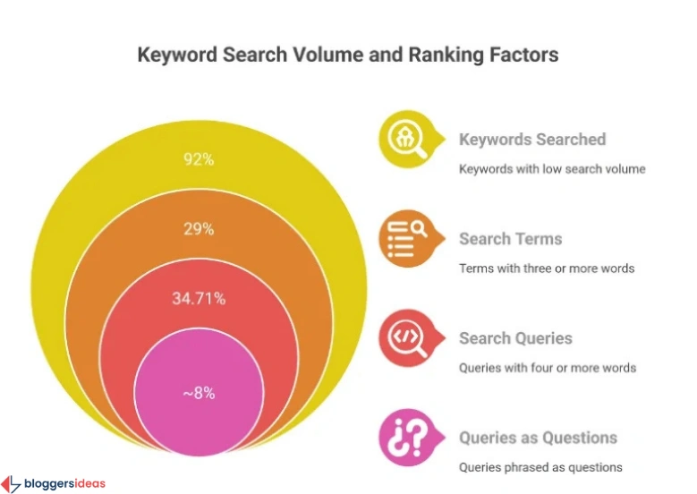 Keywords remain central to SEO, with 34.71% of Google queries containing four or more words, reflecting long-tail search trends. Google’s algorithm considers over 200 factors, with content relevance and quality ranking highest.