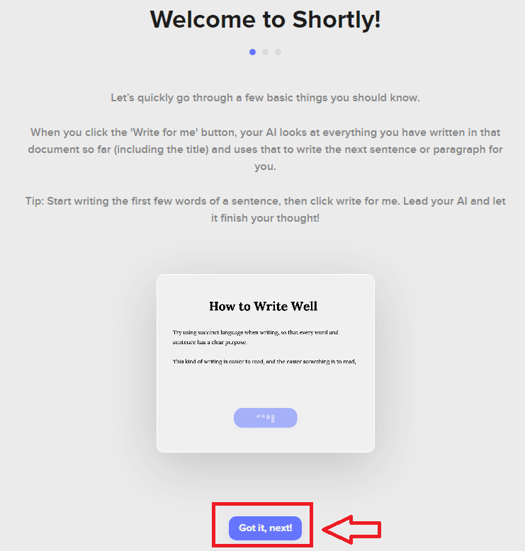 Step 1: The first step is to visit ShortlyAI’s official website, which will look like this;