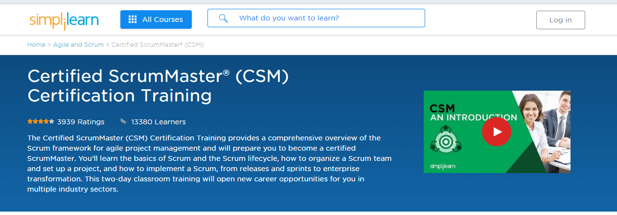 - The CSM Simplilearn training program is a live class. This course is ideal for all future professionals looking for a career in project management.