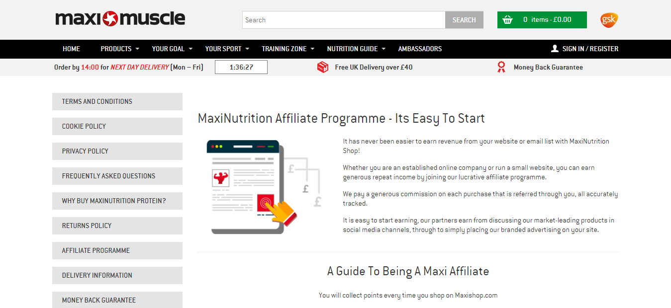 At MaxiNutrition, we specialize in sports nutrition and have been doing so for almost thirty years. We offer the best commission rate in the industry, along with stronger welcome rates when you join our program.