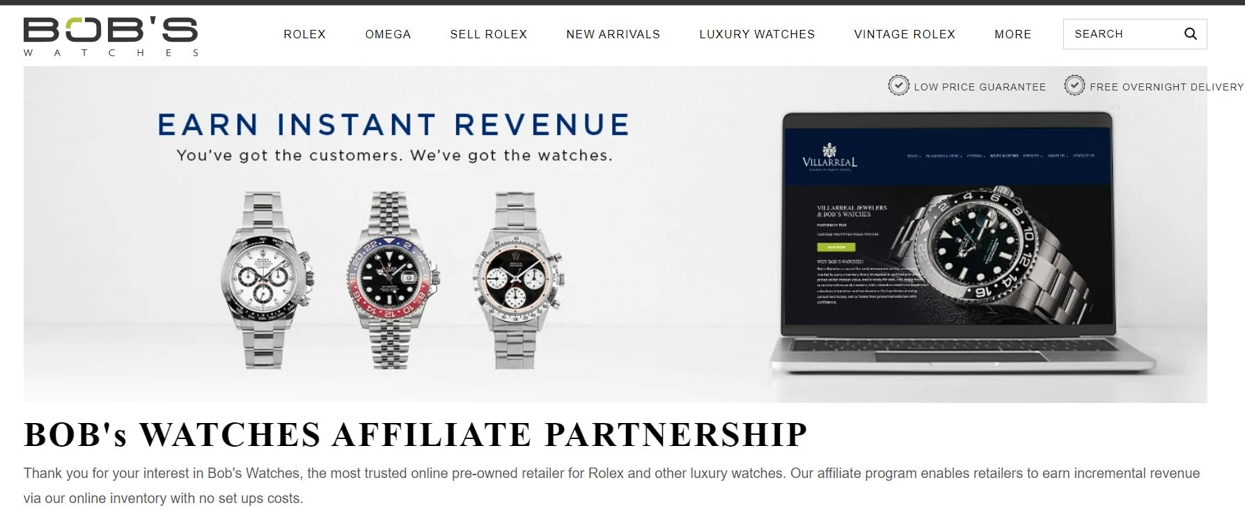 One of the most famous watch affiliate programs is the one with Bob’s Watches.