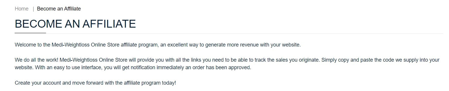This company’s claim to help clients lose up to 20 pounds in the first month is particularly noteworthy. The affiliate program for Medi Weight Loss is operated internally.