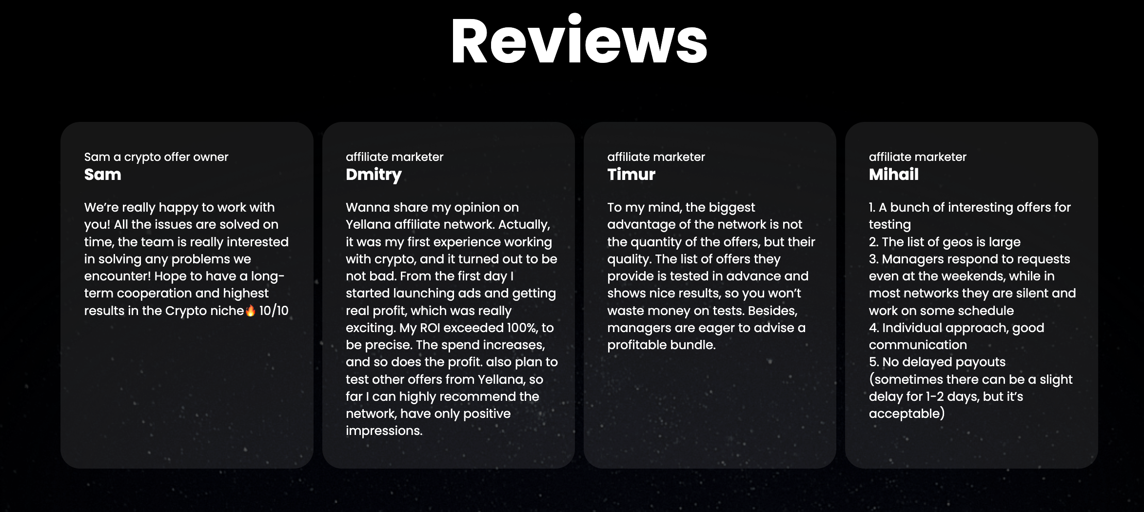 - Affiliates praise the network for tested offers, ensuring minimal risk and faster profits.